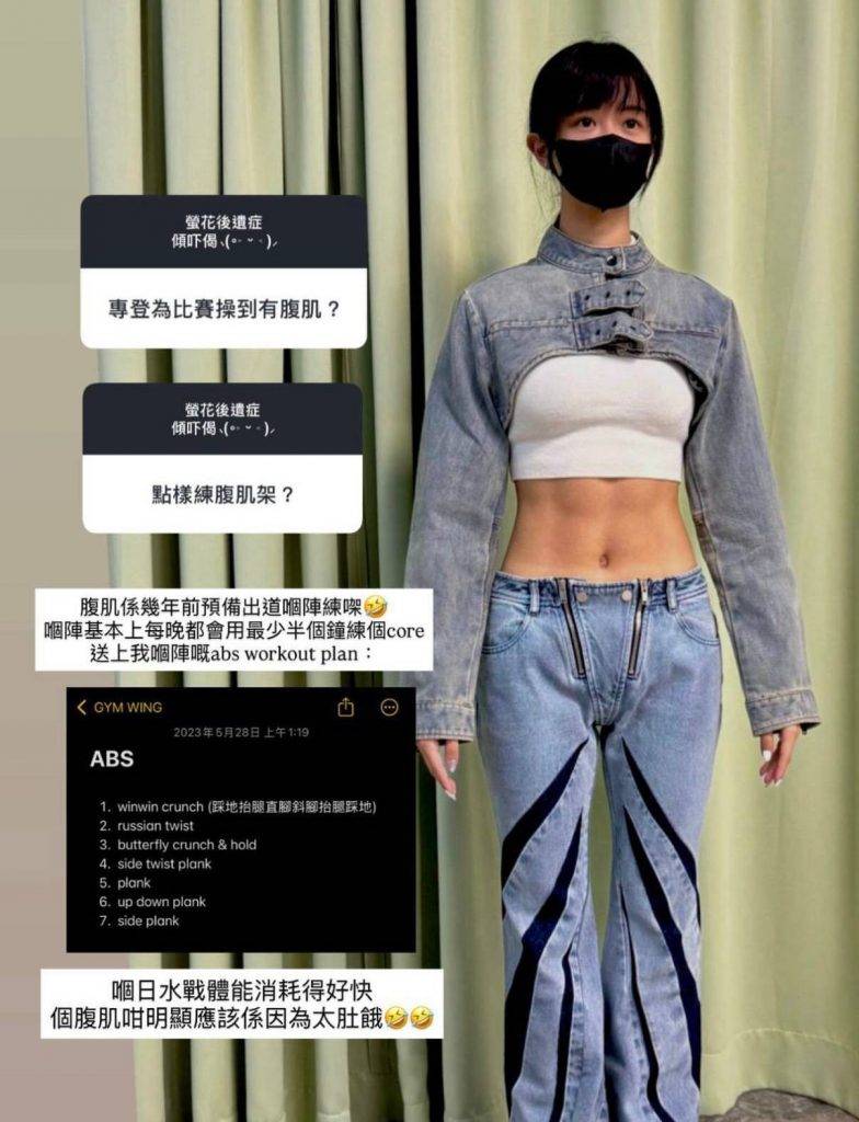 在賽事過後Vian表示,「除咗防水妝之外,第二個最多人問嘅係『一格格嘅朱古力』係點練,🤣 送上我預備出道前嘅腹肌routine🍫請慢用!」隨後她分享了自己初出道時拍下的腹肌高清照,並附上訓練時間表,她又表示「想睇兩條教學片就去follow定我ig(﹏) 隨時出!」
