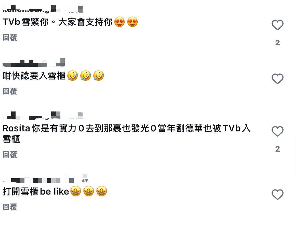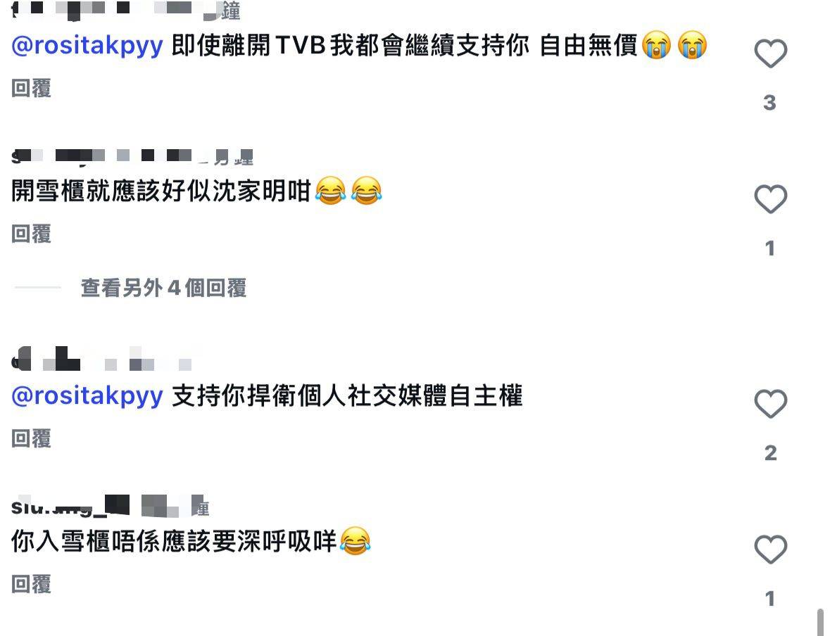 郭柏妍的影片發布後,網民留言踴躍表達支持。有粉絲留言「即使離開TVB我都會繼續支持你 自由無價」、「支持你捍衛個人社交媒體自主權」,獲得多個讚好。不少網民理解影片的雙關含意,留言「TVB雪緊你。大家會支持你」、「保護個人私隱好重要」。更有網民以劉德華為例鼓勵她「Rosita你是有實力,去到那裏也發光,當年劉德華也被TVB入雪櫃」。