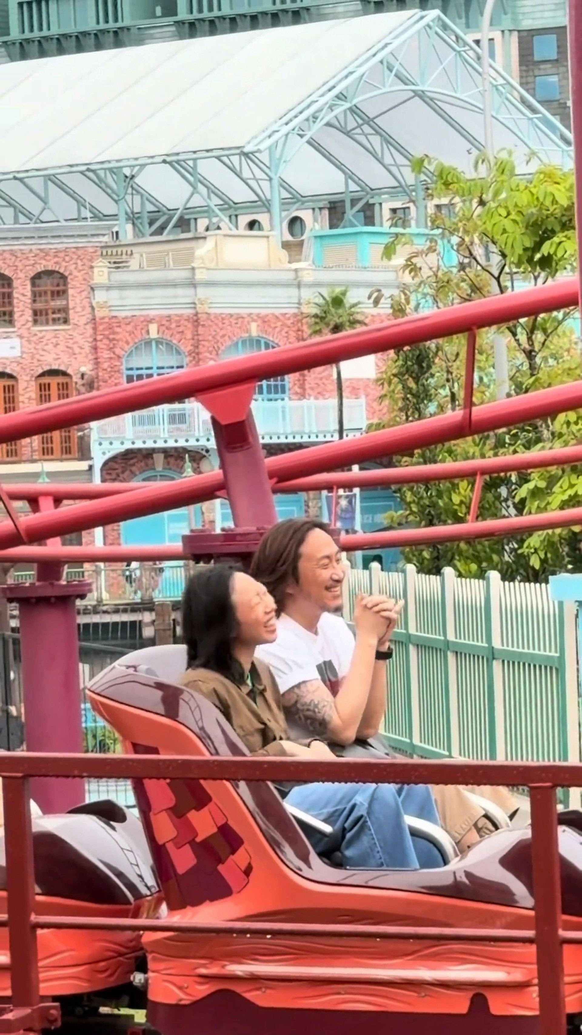 鄭中基環球影城被捕獲 與神秘女子玩過山車勁high