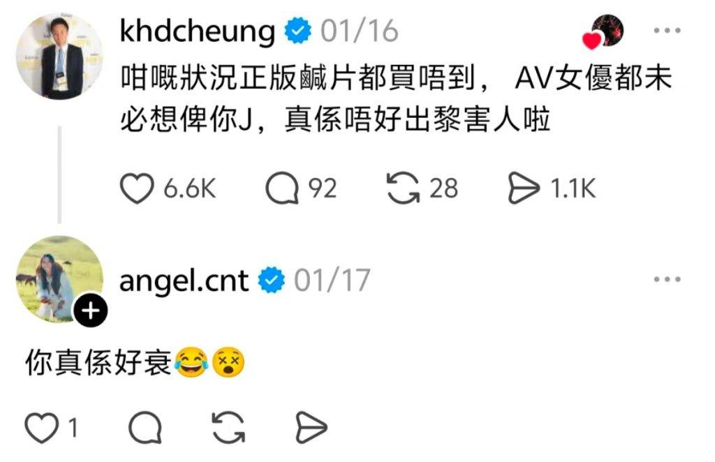 男女雙方 threads 平台公開打情罵俏