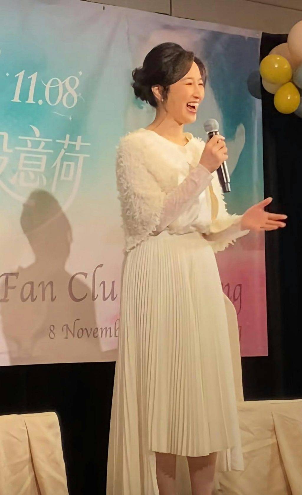 11月8日下午,關詠荷盛裝出席在香港舉行的粉絲見面會,履行與忠實粉絲在20年前許下的約定。61歲的她穿著全白色長裙,氣質優雅,一出場便引來粉絲高呼「好美呀!」由於不少內地粉絲專程來港參與聚會,關詠荷貼心地在台上詢問「我講廣東話好唔好呀?」展現她一貫的親和力。現場可見她雖然有些許緊張,但依然笑容滿面,與粉絲零距離互動。