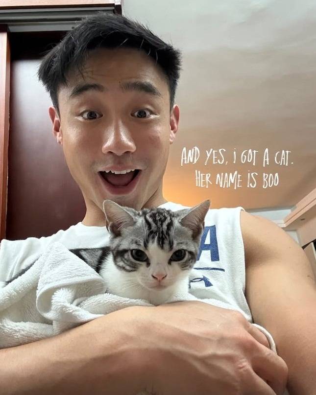 阿sa 林俊賢 Elvis喺限動中指Boo係佢新貓貓(圖片來源:林俊賢IG)