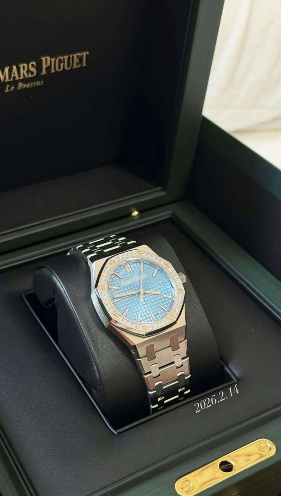 早前陳嘉慧趁著情人節在社交平台高調放閃,上載多張與老公Calvin的甜蜜合照,其中一張見她依偎在老公身旁,展現小鳥依人的幸福模樣。她更用英文深情表白:「Happy Valentine’s Day to my adventurous partner. Thank u for turning ordinary life into an extraordinary journey. Let’s go for more craziness together!(祝我熱愛冒險的伴侶情人節快樂!感謝你將平凡的生活變成了一段非凡的旅程,讓我們一起體驗更多瘋狂吧!)」隔著螢幕都能感受到她滿滿的幸福感。更令人震驚的是,她大方展示老公送贈的情人節禮物——一隻AUDEMARS PIGUET ROYAL OAK系列名錶,估計價值逾50萬元,相當大手筆,足見老公對她的寵愛程度。