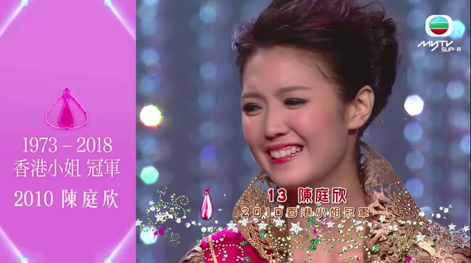 陳庭欣 楊振源 有指陳庭欣參選時表現一般,加上笑時露出大牙肉,引來不少網民取笑她是最醜的香港小姐之一。(圖片來源:Youtube@myTV SUPER)