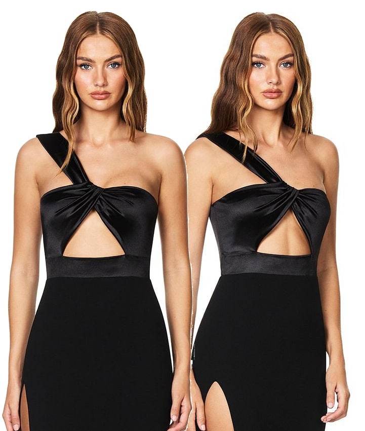 陳自瑤向來以優雅及性感集一身的造型著稱,每次出席重要場合都能手到拿來帶來話題。今次她選擇了一襲來自澳洲品牌Nookie、售價港幣3,150元的黑色單帶中空長裙現身台慶頒獎禮。這件戰衣設計大膽,不但有中空剪裁展示纖腰,更配搭高衩設計盡晒修長美腿。最矚目的當然是她以「南半球」姿態展示白滑酥胸,「奇峰突出」的效果令吸睛度爆燈,瞬間成為當晚紅地氈焦點。