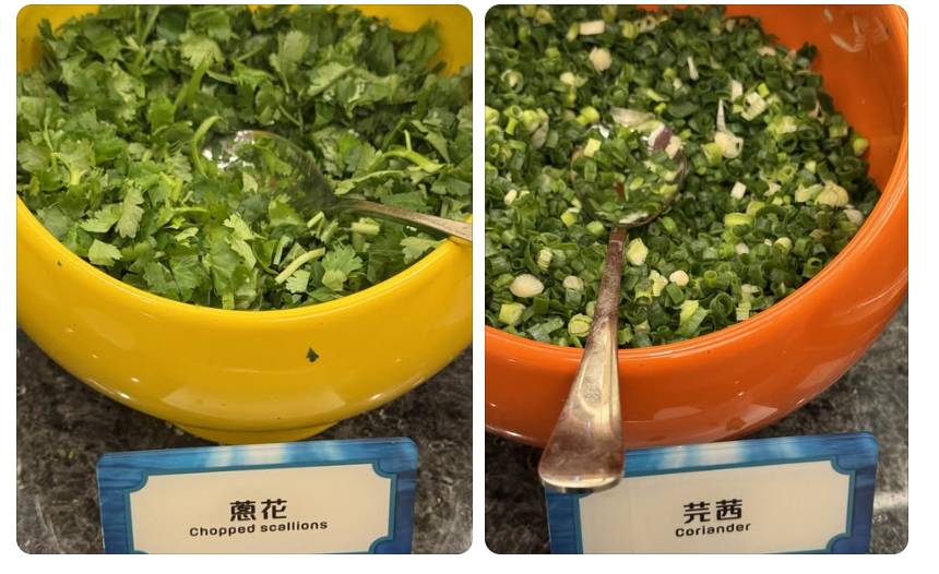 該名網民在社交平台分享事件,表示因為香蔥及芫茜切碎後顏色相近,若非細心留意標示牌,差點就會誤食芫茜。他更發現餐廳連菠蘿同榴槤的標示牌都擺錯位置,懷疑餐廳職員是否故意搞事,直斥「仆街嚟」。網民上載的照片顯示,自助調料區確實出現標示錯誤的情況,令不少同為「反芫茜派」的網民感到震驚。
