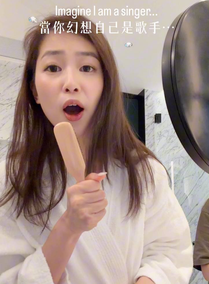 郭柏妍在這段題為「當你幻想自己是歌手」的短片中,完全展現了她的搞笑細胞。片中她身穿浴袍於浴室內邊化妝邊對鏡獻唱經典金曲《喜歡你》,表情極度陶醉,彷彿置身於大型演唱會現場。最搞笑的是,她索性將梳子、水杯當作咪高峰,甚至連花灑都成為她的演出道具,完全沉浸在自己營造的音樂氛圍中,毫不在意外界眼光。
