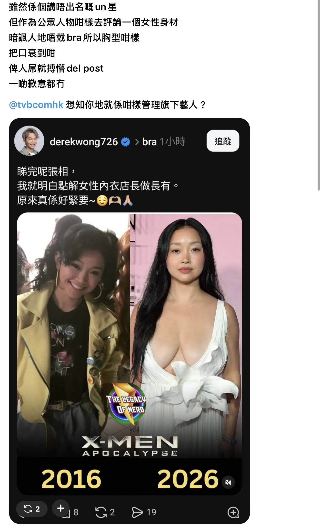 44歲TVB男星公開點評外國女星身材 火速刪帖遭網民狂轟:典型噁男口衰到咁