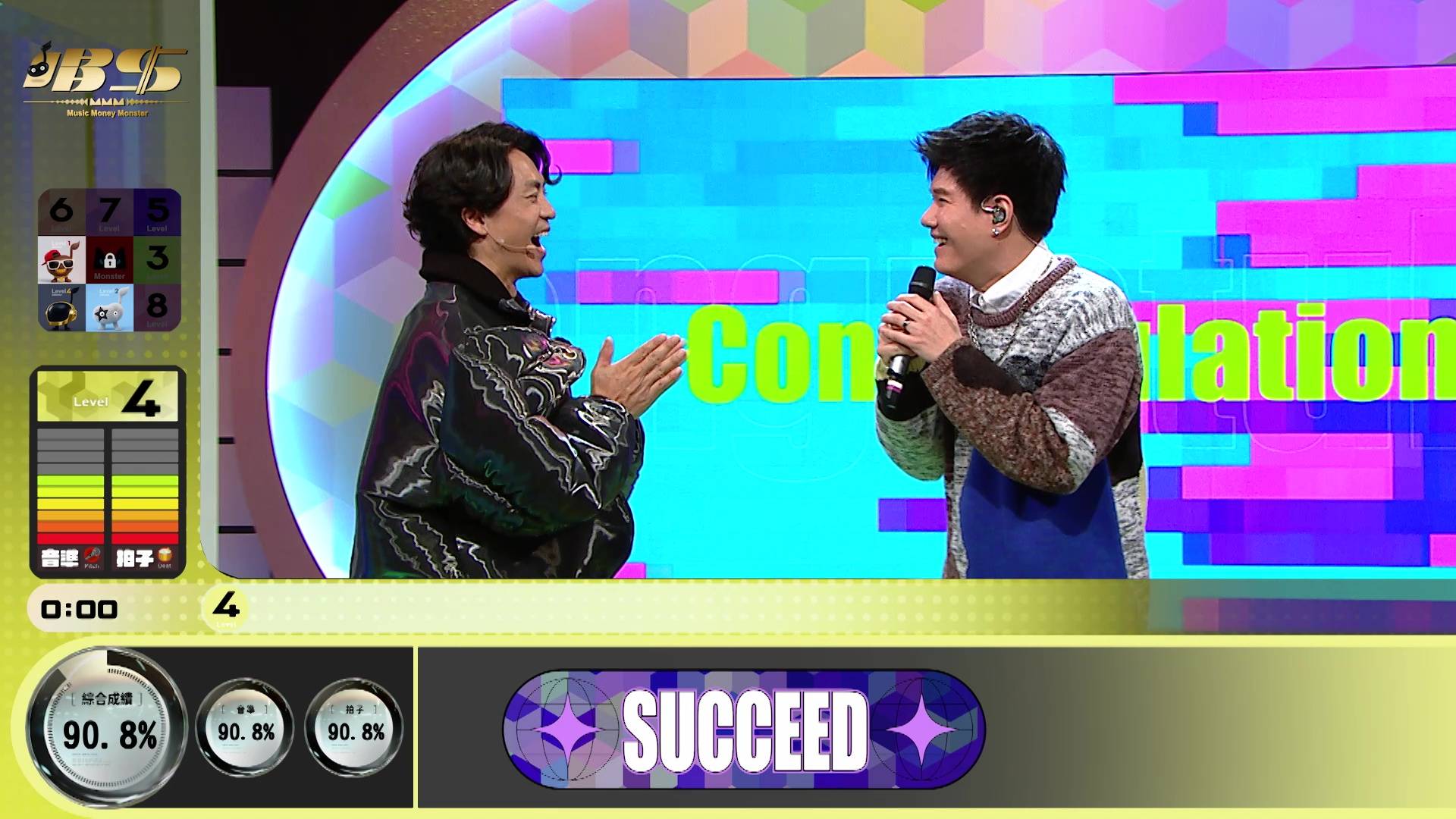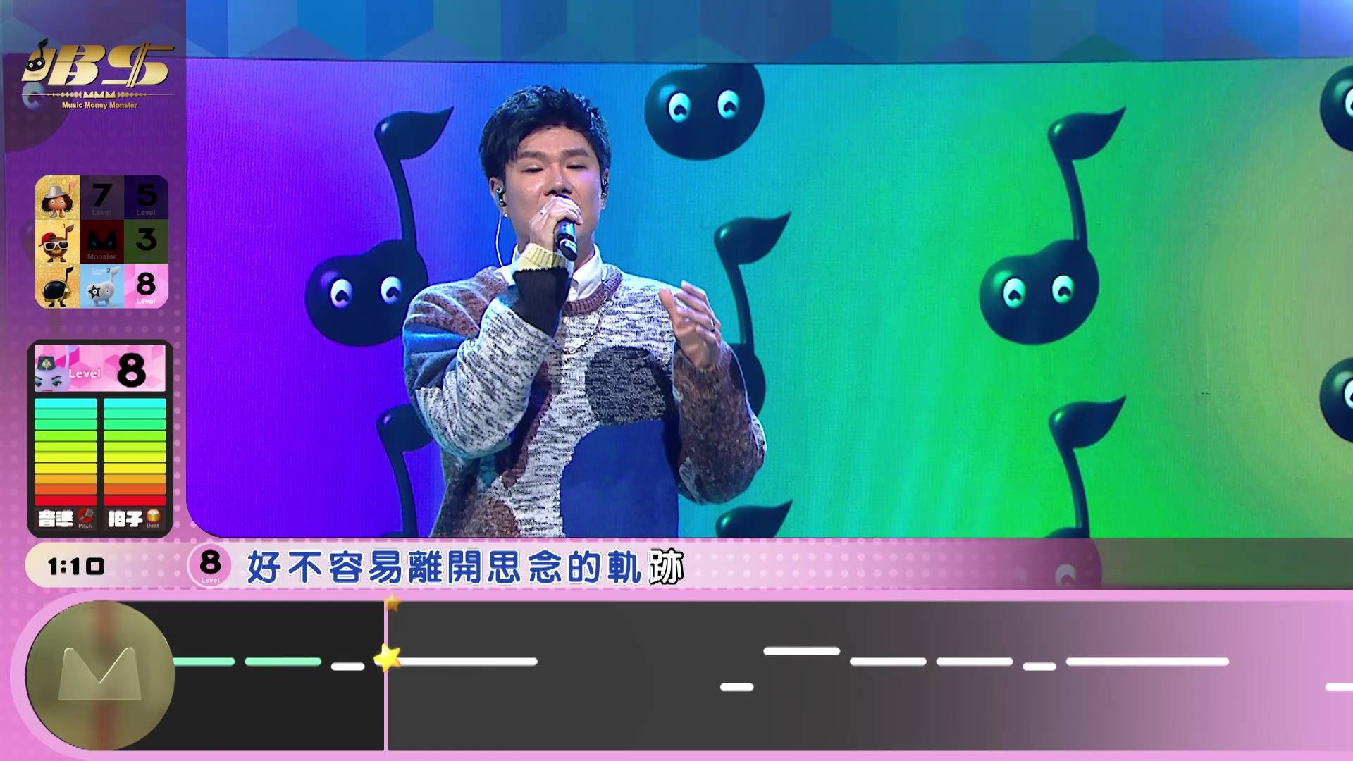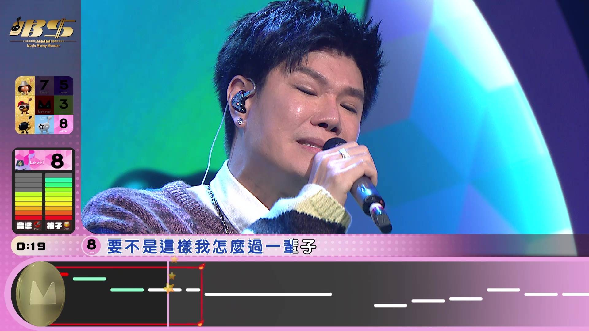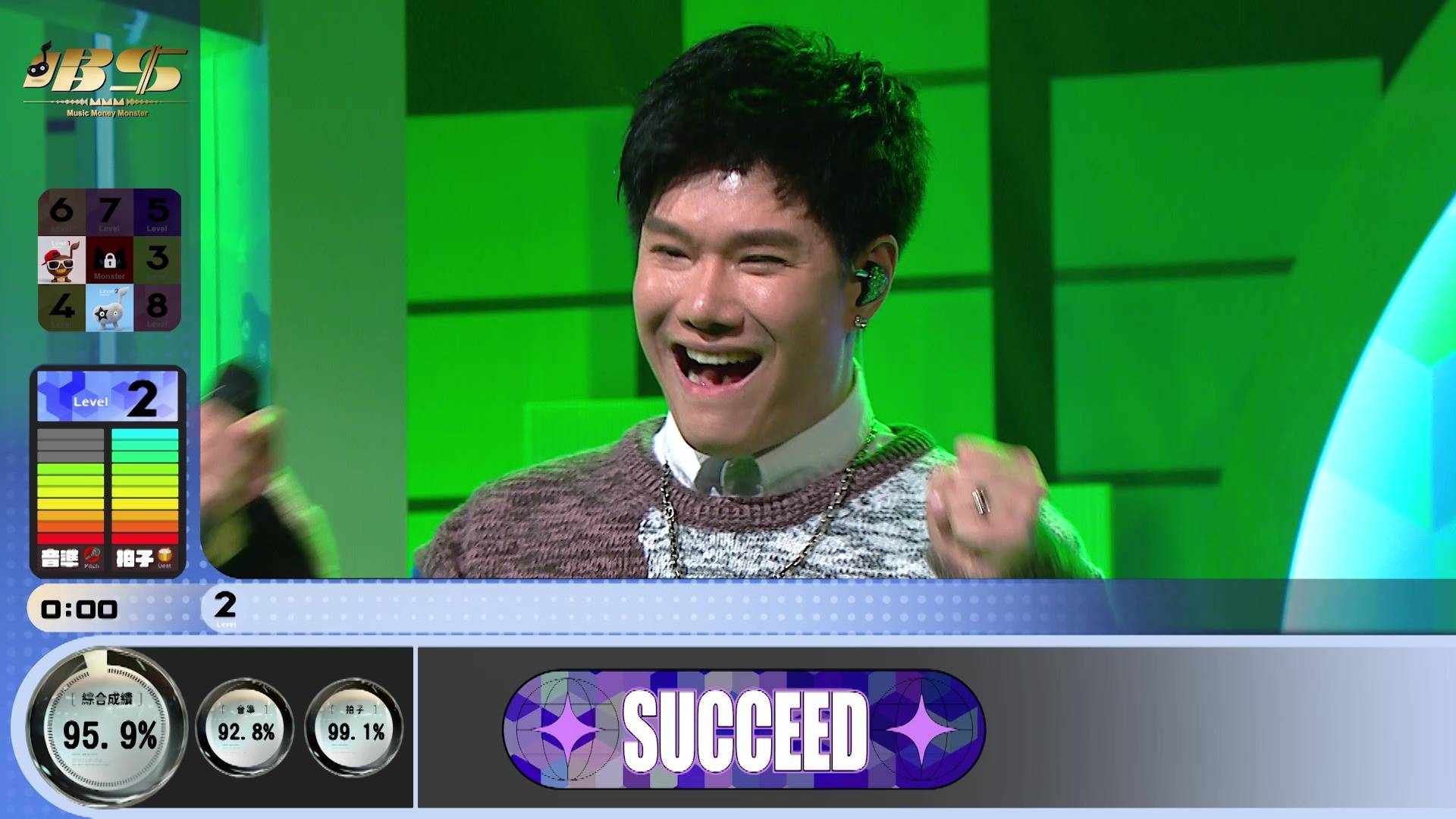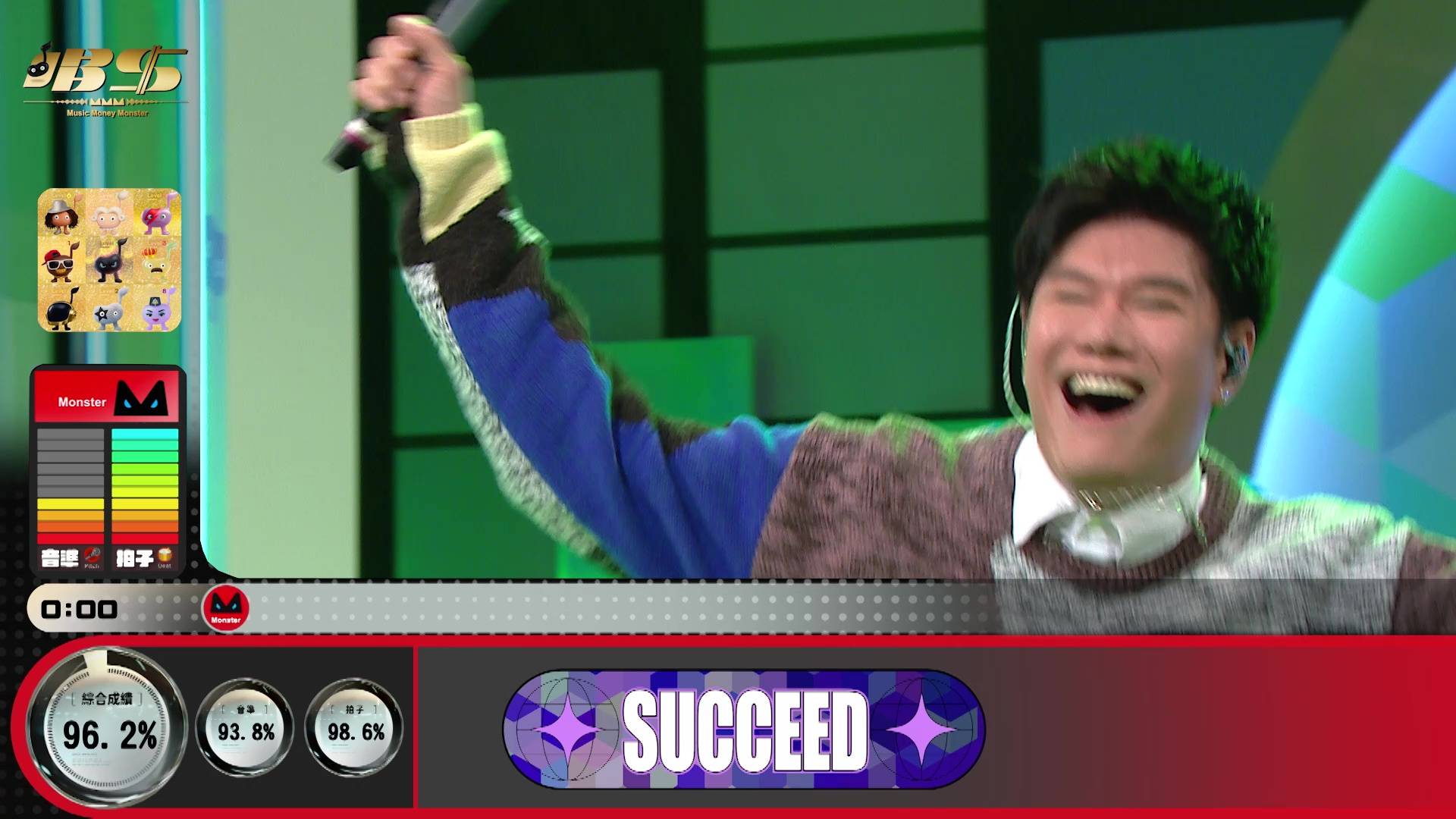 在9首歌曲中,張與辰表現最好的竟是Monster Level的《浮誇》,綜合成績高達96.2%!音樂總監Eric Kwok事後亦忍不住激讚,指他挑戰《浮誇》時頭22秒完全零偏差:「與辰個頭開得好好。」不過,整個挑戰亦有「美中不足」之處,當張與辰唱到最後一粒夾雜「長音」及「高音」的尾音時,因已連唱多首幾乎斷氣,被逼放棄,他更綜藝感十足地趴地作五體投地狀示意投降,場面搞笑。
