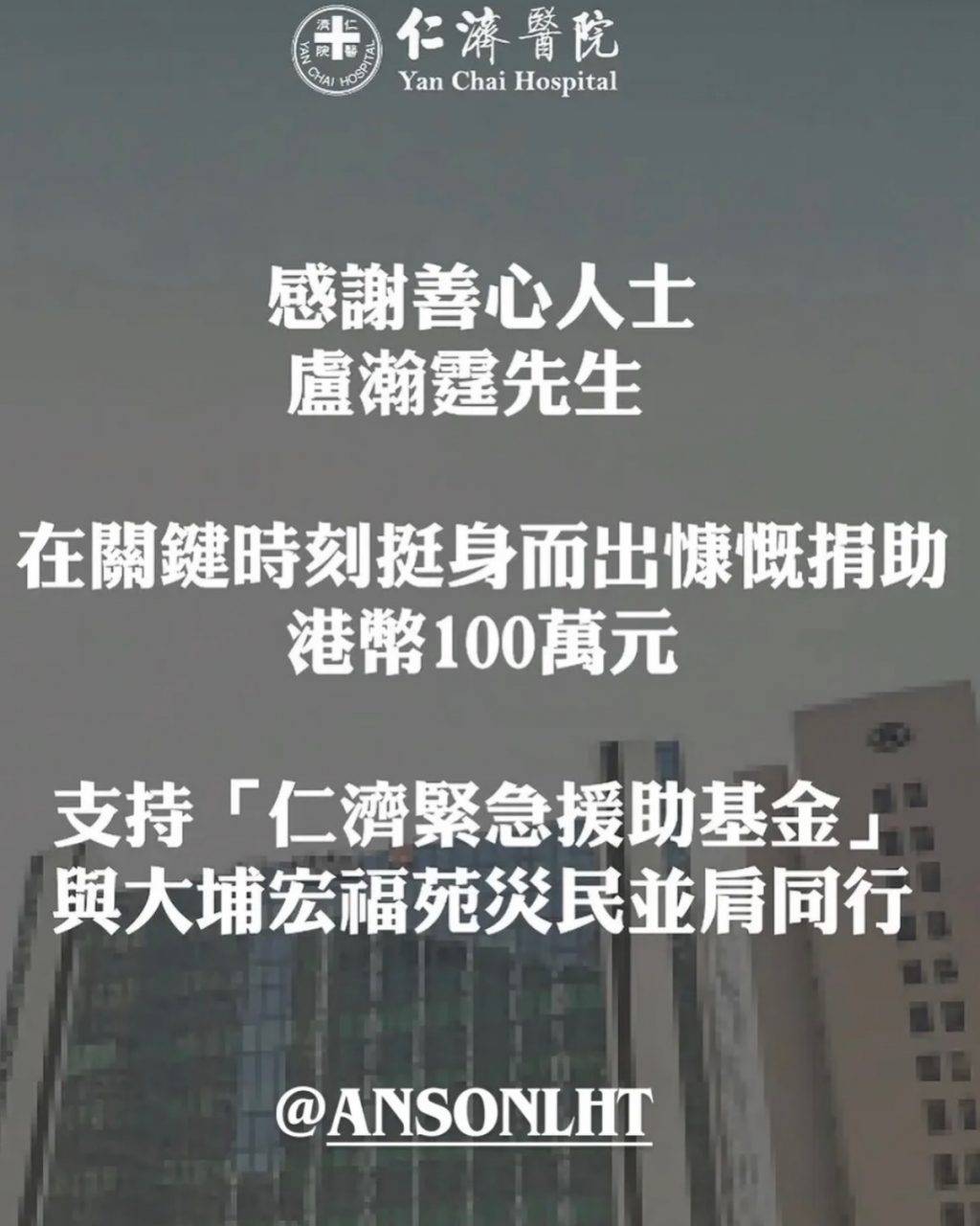 事實上,Anson Lo在火災發生後已迅速行動,不僅向「仁濟緊急援助基金」捐出100萬元,更在得知有「神徒」受災情影響後,立即透過粉絲會送上物資。他更親自以視訊通話問候受災粉絲,並送上親筆信作鼓勵,這些低調善舉被曝光後,網民紛紛讚揚他為「人間天使」。從捐款到親自慰問,再到今次捐出演唱會收益,Anson Lo的一連串行動展現出真摯的關懷之心。