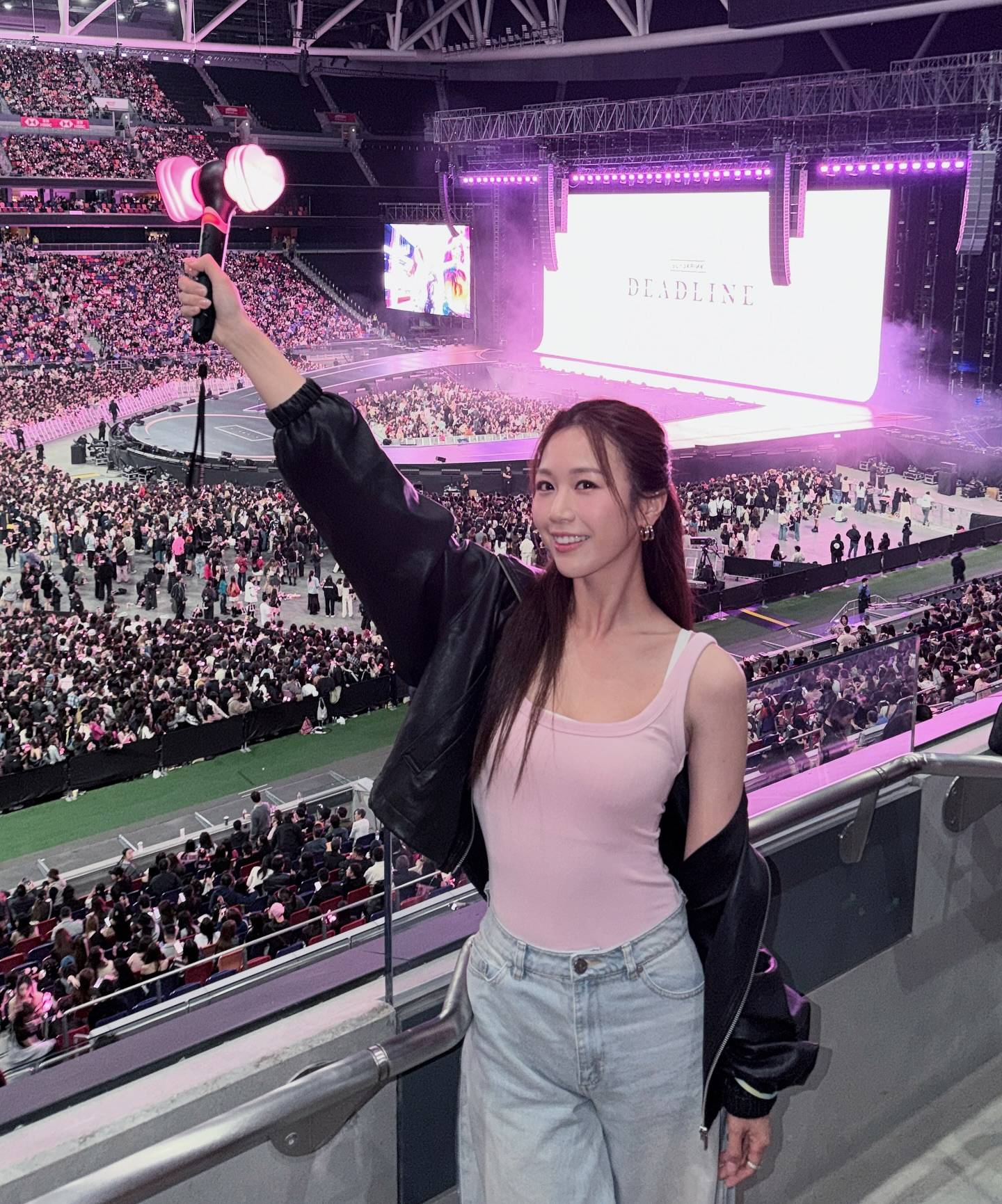 陳楨怡對BLACKPINK的熱愛程度令人咋舌,她不但連續觀看兩場演出,更是全副武裝出席。她特意穿上黑色透視緊身衫加底,外披BLACKPINK應援服飾,手持應援物品左搖右擺,整個人完全沉浸在演唱會的氛圍當中。從現場照片可見,陳楨怡全程投入演出,甚至在台下跟著音樂節拍舞動,展現出真正粉絲的狂熱態度。