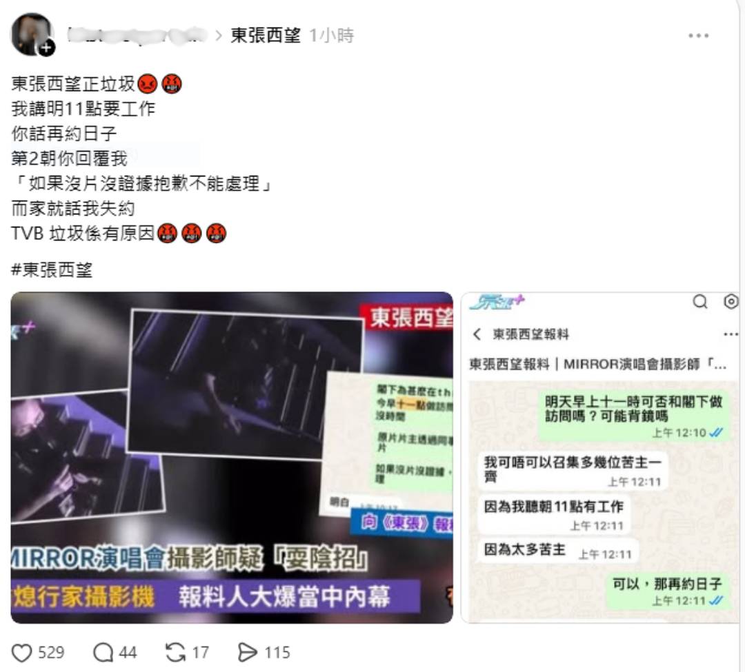 爆MIRROR演唱會黑幕 報料人轟《東張》講大話 網民:TVB都要靠鏡仔爭流量!