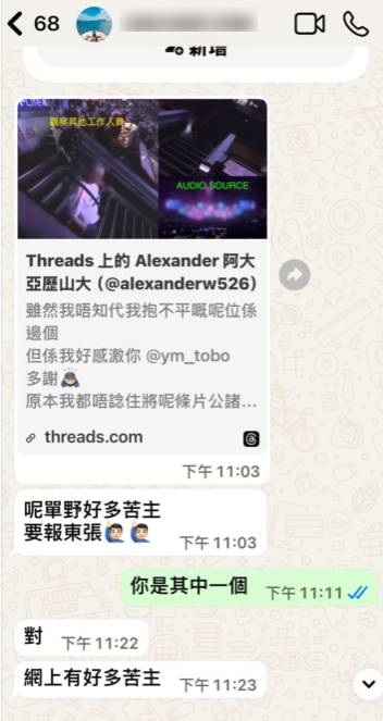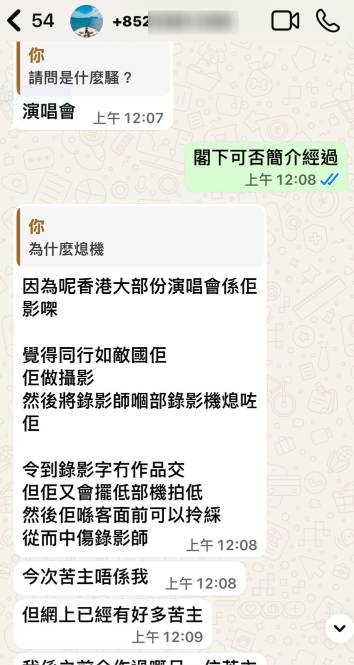 被指涉事的攝影師「C」其後留言回應,表示當時現場已放置三部錄影設備,她同時負責影相及拍片,需要監看台上情況並檢查器材電量與運作。她指有一部Sony設備停止運作屬常見狀況,否認刻意干擾他人,亦認為影片字幕屬外界想像,「不需要再解釋」。惟其解釋未能平息爭議,反而引來更多同行質疑,直指問題核心是「為何會觸碰並關停他人設備」,並要求正面回應。