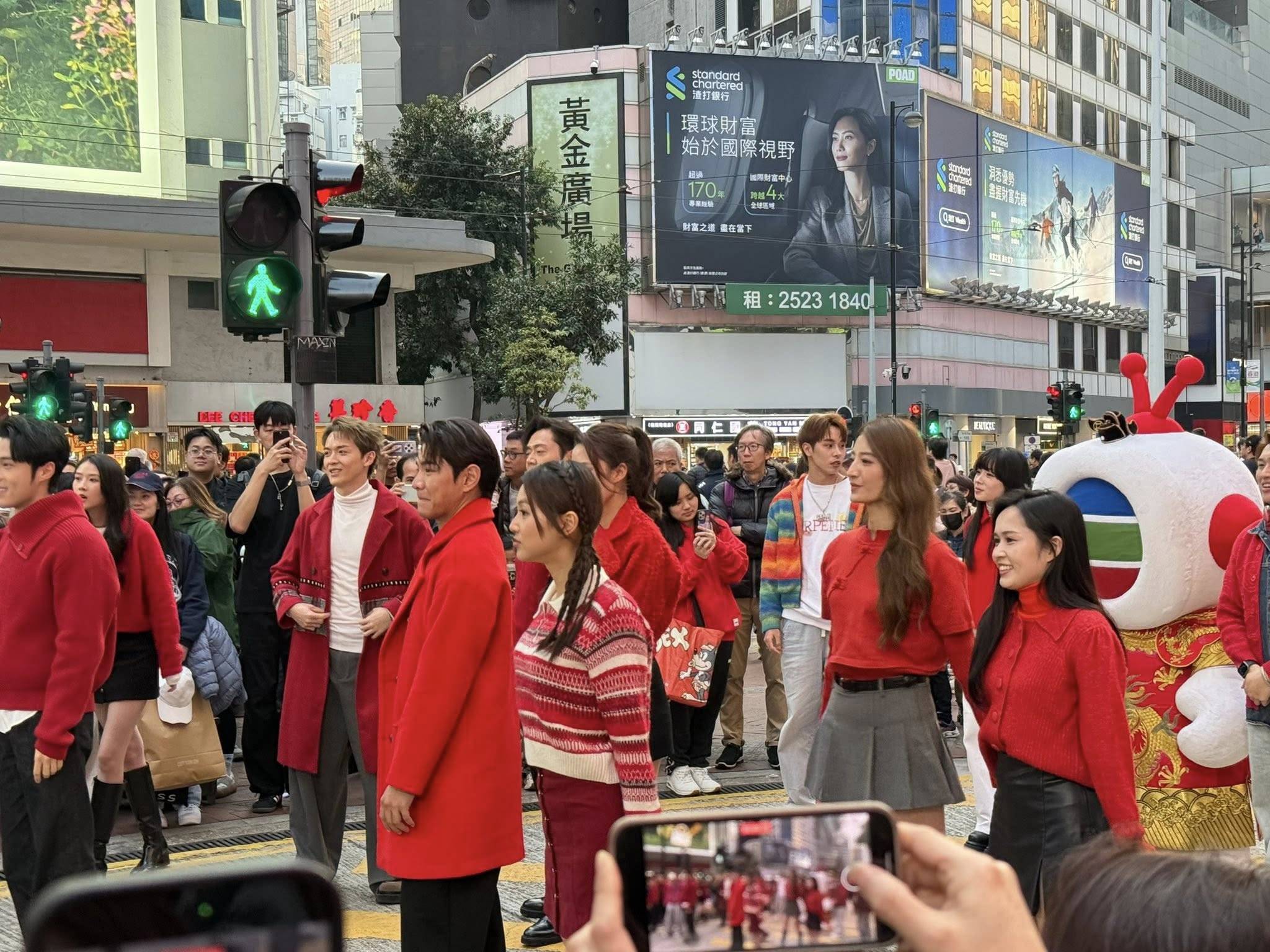 TVB一眾小生小花前日(10日)突然現身銅鑼灣鬧市拍攝賀年宣傳片,從參與陣容已可預視無綫今年的力捧名單!視帝張振朗、羅天宇、劉穎鏇、郭柏妍等12位藝人齊齊著紅衫與TVBuddy當街載歌載舞,吸引大批途人圍觀拍片。最令網民驚喜的是,拍攝完畢後竟有四位藝人主動留低與粉絲自拍,被大讚「好襟撈、好友善」,絕對抵紅!