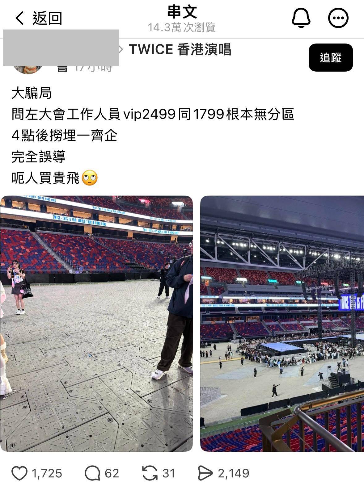 TWICE香港演唱會VIP門票風波 花2,499元企位竟同1,799元無分別 粉絲轟3大中伏位!