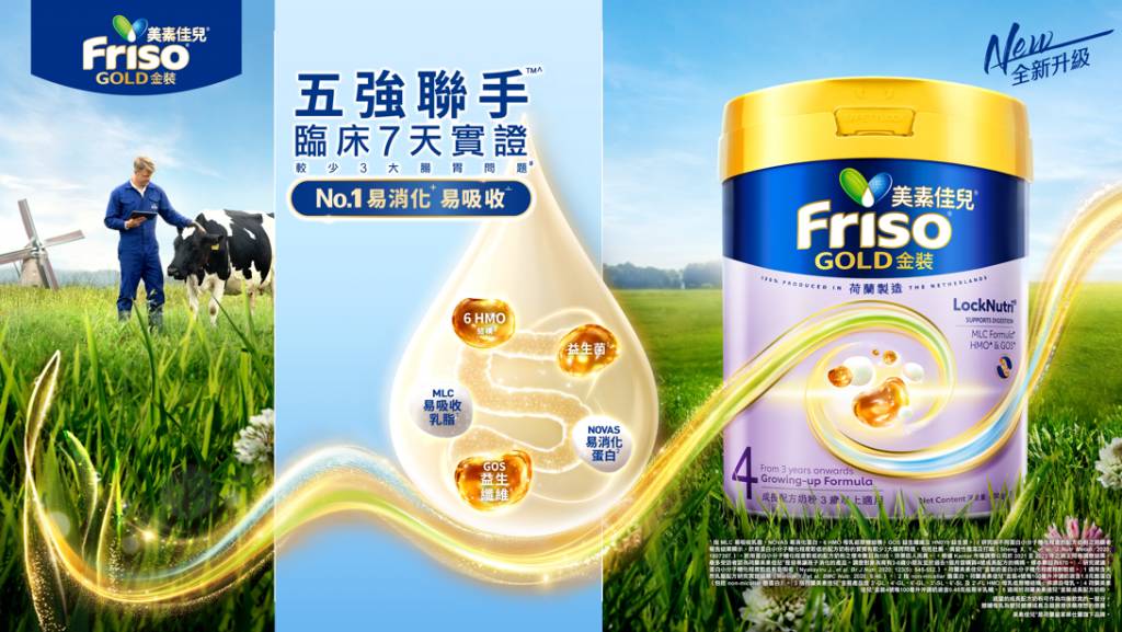 *根據Kantar市場調查公司於2025年之調查結果,92%受訪媽媽認同(升級)荷蘭美素佳兒®金裝是No.1易消化易吸收的產品,調查對象為於過去1個月曾購買成長配方奶粉的媽媽。樣本數目為200。