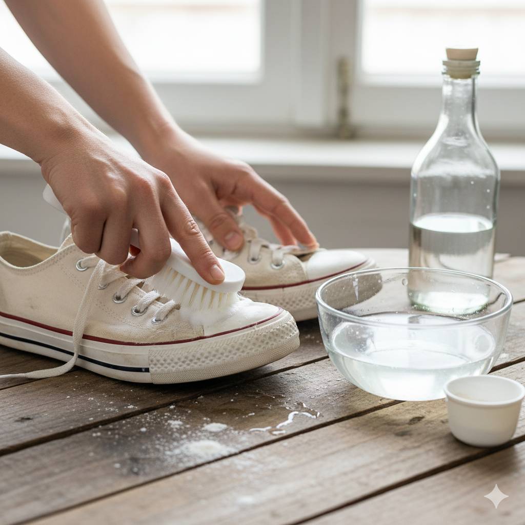 將白醋與水以1:1的比例混合,使用棉球或軟布沾取混合液,輕輕擦拭鞋面。這種方法可以有效去除鞋子的污漬及異味,並且白醋具有天然的消毒效果。擦拭後,請用清水再擦一次,然後自然晾乾。