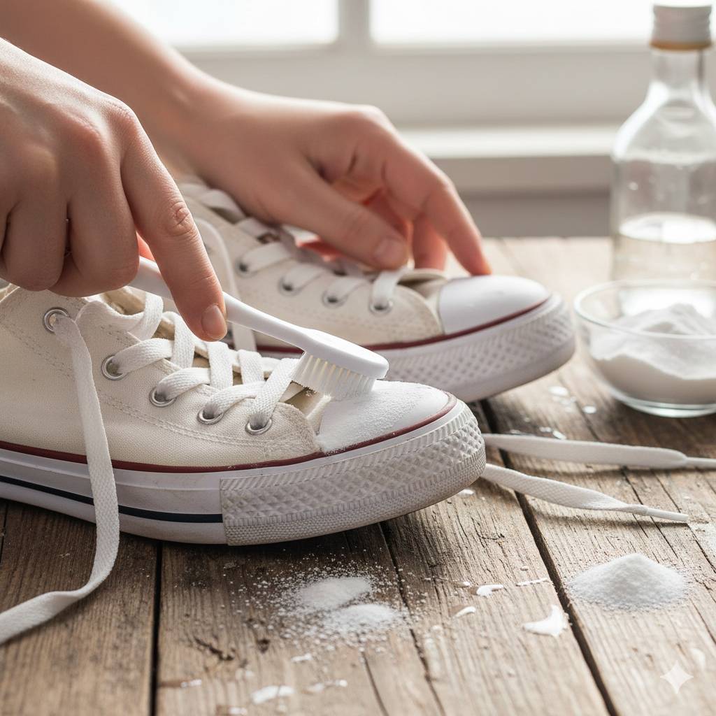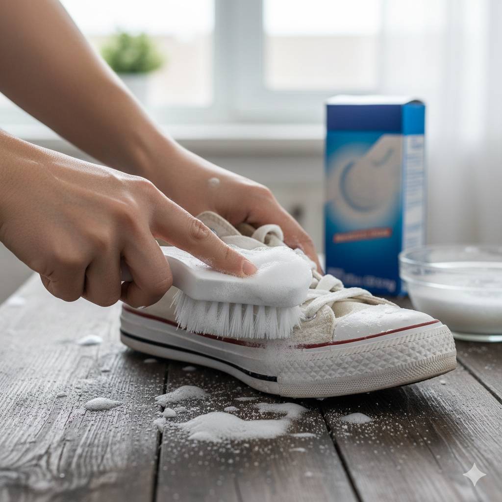 這個方法適合鞋子非常髒的情況。將小蘇打、雙氧水和清水以2:1:1的比例調和,製成面糊狀。用小刷子均勻地塗抹在鞋子表面,然後放在通風處晾乾,可以選擇用衛生紙包裹鞋面,幫助吸收多餘的水分。完全乾燥後,清除表面的小蘇打粉塵,您的小白鞋將恢復潔白。