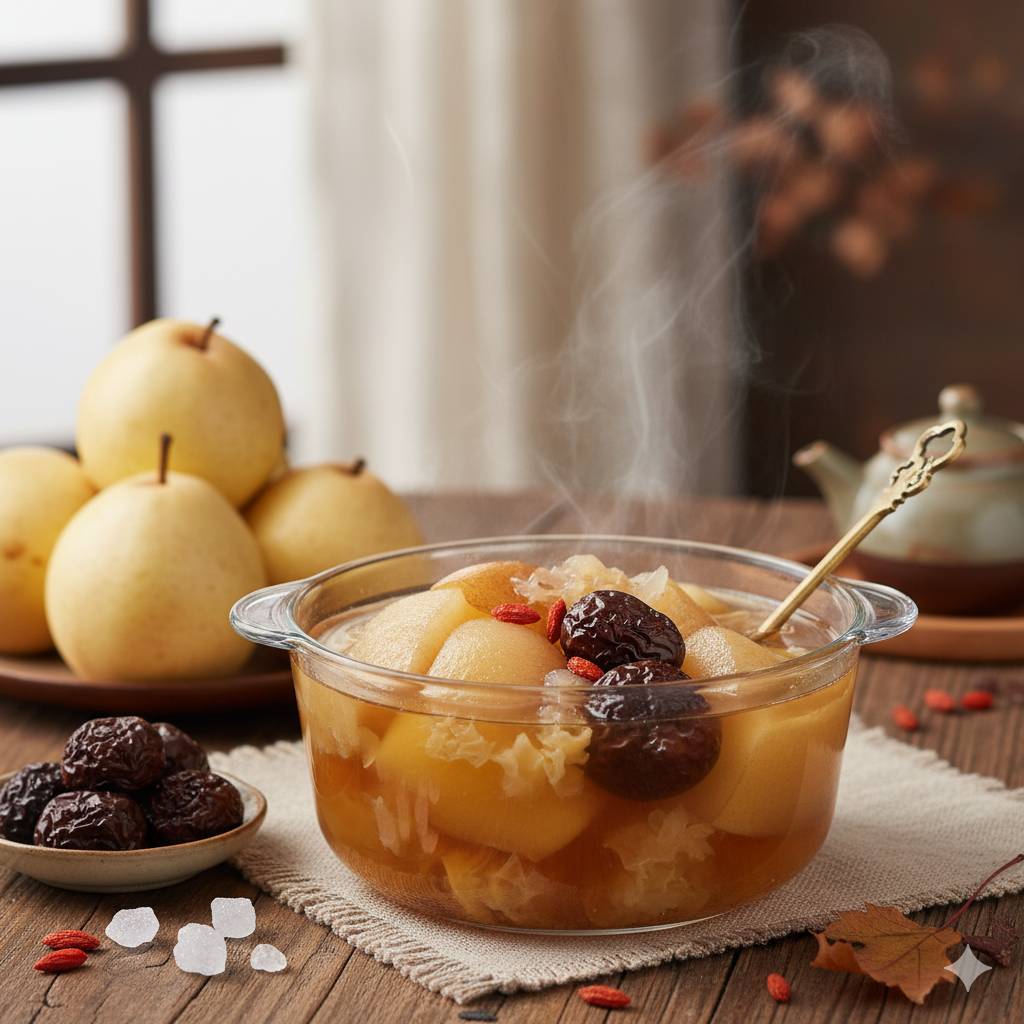 中醫認為流鼻血多與「肺熱」「胃火」有關,可透過飲食與湯水調理,達到清熱、滋陰、潤燥的效果。在此分享一款源自北京、非常經典的秋冬季潤燥糖水「小吊梨湯」。相信酸甜的口味也會十分受小朋友的青睞。這道甜品的精髓在於利用銀耳釋放的膠質,讓湯水變得黏滑,能更持久地滋潤喉嚨。加入話梅則提供了獨特的風味,讓湯水酸甜可口,非常開胃。