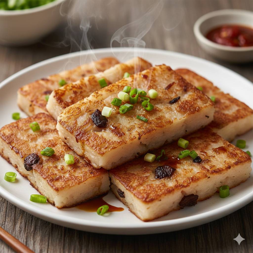 一般而言,蘿蔔糕或芋頭糕2-3件小方塊(約120-180g)為一餐的合適份量;年糕類則以1-2薄片(約40-80g)為佳。鹹糕點可作為一餐的主要碳水化合物,搭配蔬菜與清淡蛋白質,例如蘿蔔糕3件配炒菜心1碗、蒸魚或豆腐1手掌心分量,再加無糖豆漿1杯,總熱量約400-450kcal,既均衡又有飽足感。