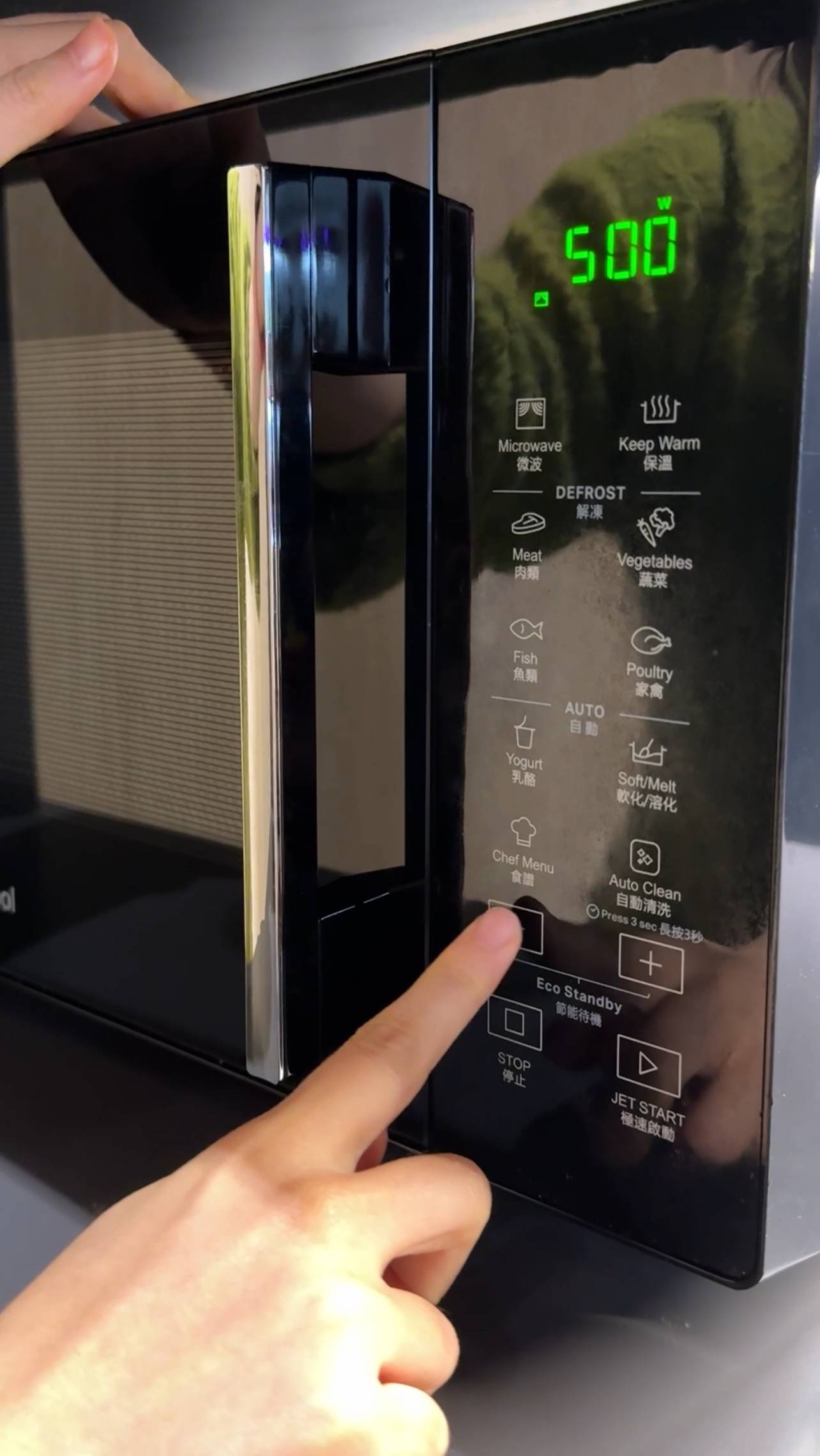 4)放進微波爐600W 1分20秒就可以完成半熟蛋