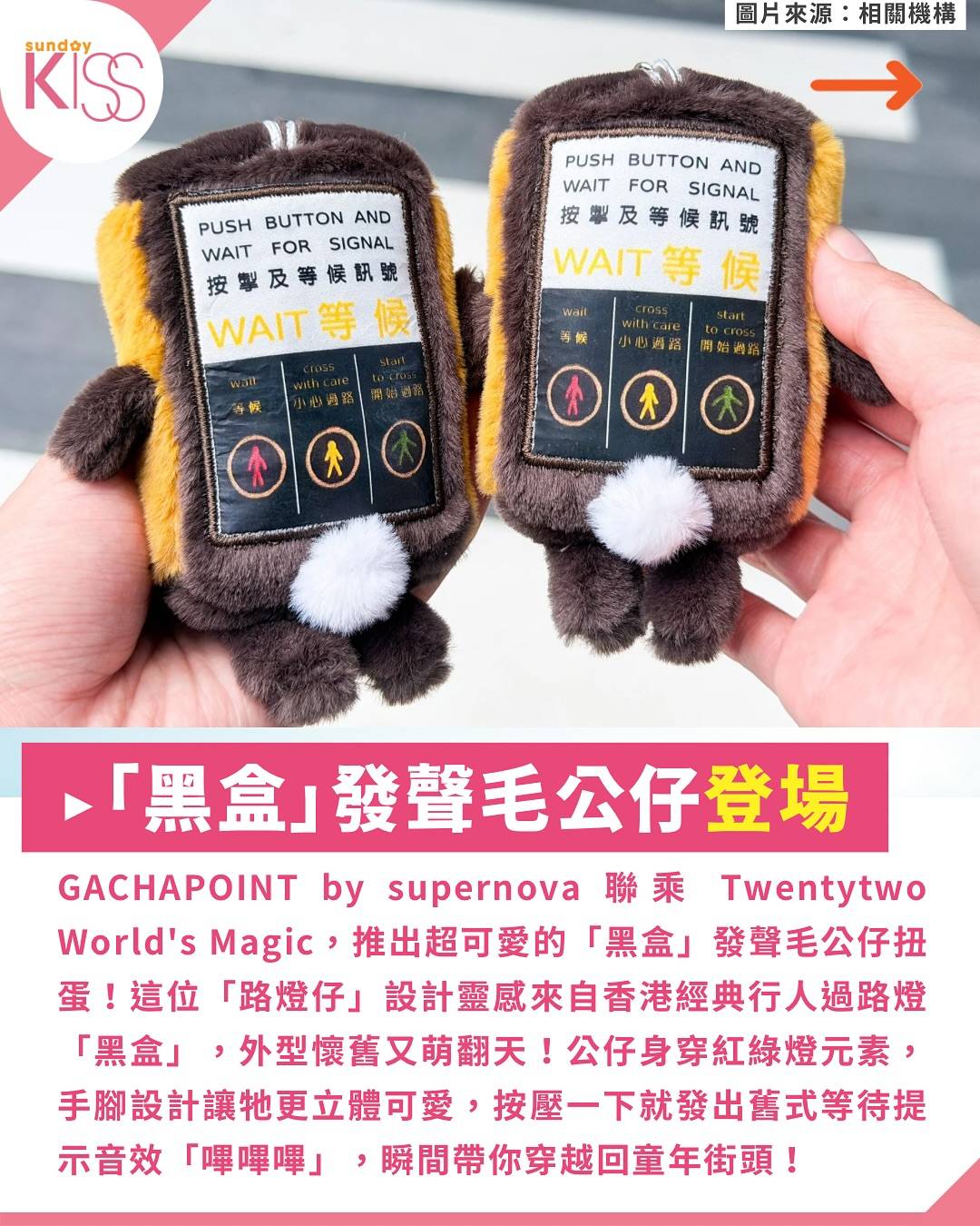 GACHAPOINT by supernova 聯乘 Twentytwo World’s Magic推出超可愛的「黑盒」發聲毛公仔扭蛋!😍 這位「路燈仔」設計靈感來自香港經典行人過路燈「黑盒」外型懷舊又萌翻天!公仔身穿紅綠燈元素手腳設計讓牠更立體可愛按壓一下就發出舊式等待提示音效「嗶嗶嗶」瞬間帶你穿越回童年街頭!🎵🚦