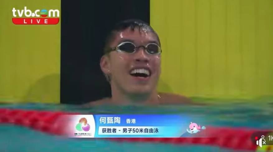 男子50米自由泳決賽在水花四濺中展開,何甄陶在第5線出戰,面對包括100自金牌得主潘展樂在內的強手。這項短途決賽競爭激烈,何甄陶在一眾好手中脫穎而出,以21.71秒率先觸池贏得金牌,並打破由他保持的香港紀錄。男子100自世界紀錄保持者潘展樂游出22.31秒,僅得並列第三名。何甄陶得悉佳績後隨即流露燦爛笑容,興奮之情溢於言表。