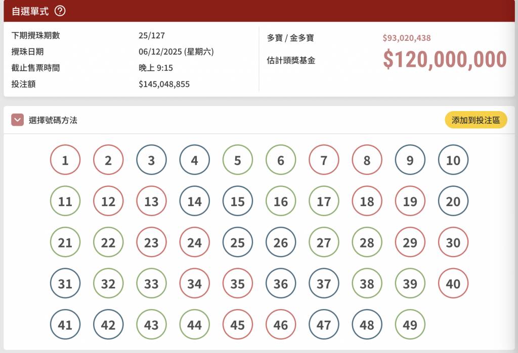 六合彩金多寶|12月6日攪珠頭獎1.2億元 4個幸運號碼最常攪出