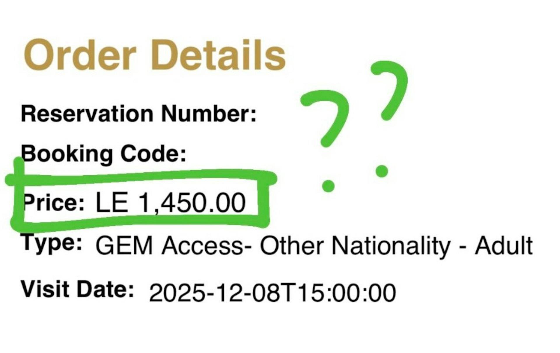 事主在threads帳號發帖分享這個「笑話」,表示她透過網上平台購買門票,準備前往西九故宮博物館參觀古埃及文明大展。然而當她到達現場在門外檢查門票時,職員卻「嘟極都嘟唔到」,更疑惑地問道「咦?點解個錢係1,450嘅?咩嚟㗎?」經過檢查後才發現,她原來錯誤訂購了位於北非國家埃及的博物館門票,而非香港的展覽門票。