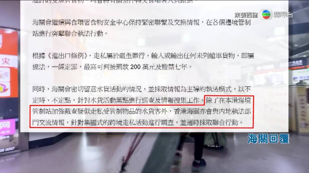 在最新一集(4日),《東張西望》除了調查水貨食物的去向,更特意調查刺身類貨品是否存在走私情況。節目組走訪新蒲崗及多間分店了解,發現其刺身均由正規渠道空運到港,並無發現任何「水貨刺身」流入門市。