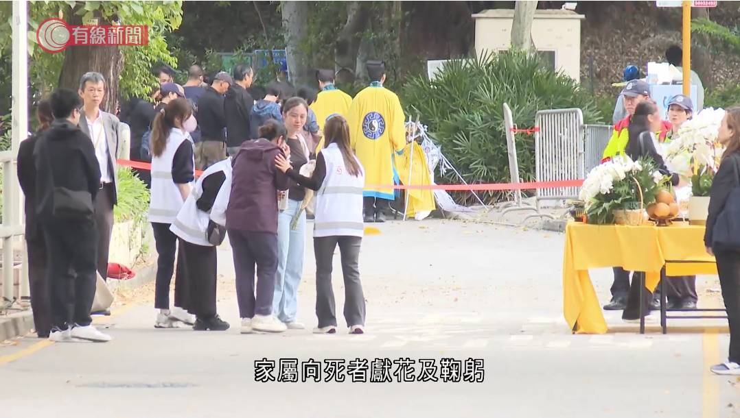 早上開始已有大批市民自發到廣福道休憩處排隊獻花,涼亭內貼滿密密麻麻的悼念紙條,有市民特意摺製千紙鶴表達對逝者的哀思。現場特別設置了「小動物心願牆」及「寵物家屬悼念區」,紀念在大火中不幸罹難的動物,旁邊擺放著貓狗糧和罐頭等食物作為祭品。整個悼念區域氣氛極為肅穆,參與悼念的市民神情哀傷,不少人在默哀時忍不住落淚。