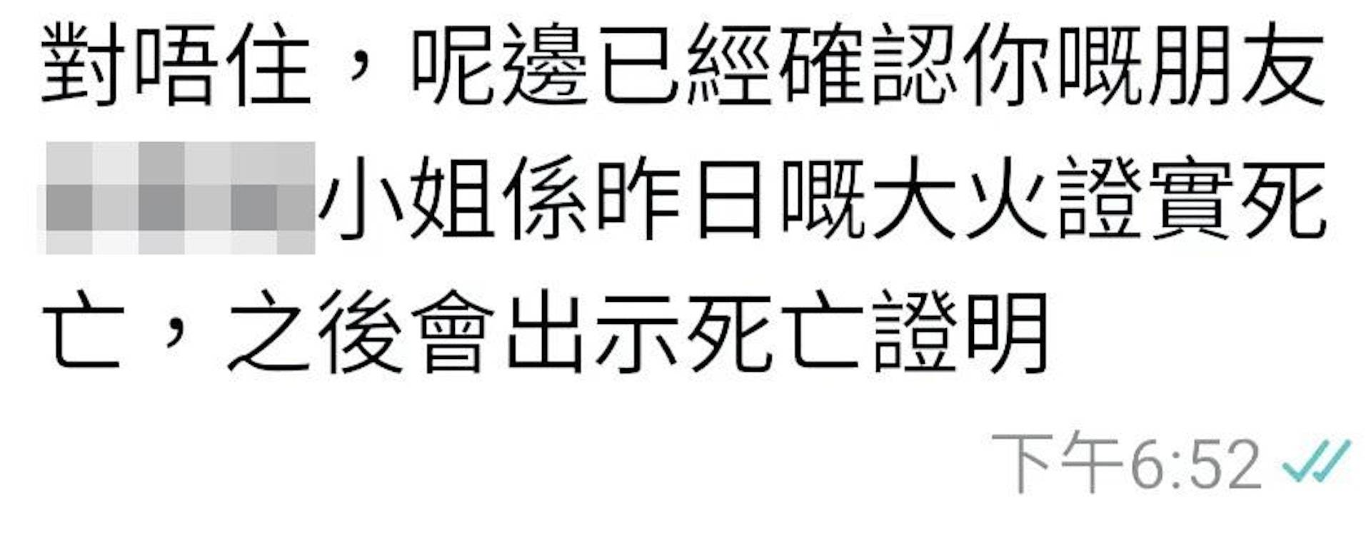 網民勸告不要認屍,因為這會很難接受:「朋友的結局不是善終。」對於有網民質疑為何未成年人能收到認屍的消息,有人對帖文的真實性表示保留。「你未成年又不是親屬,沒理由可以去認屍。就算家屬願意讓你去,還是建議你不去認屍。小朋友很難承受,因為朋友的模樣會與平常有差別。不如等到出殯時再去見最後一面。」女童回應說:「我阿爸阿媽讓我去的,所以我決定去,因為我想見她最後一面。」