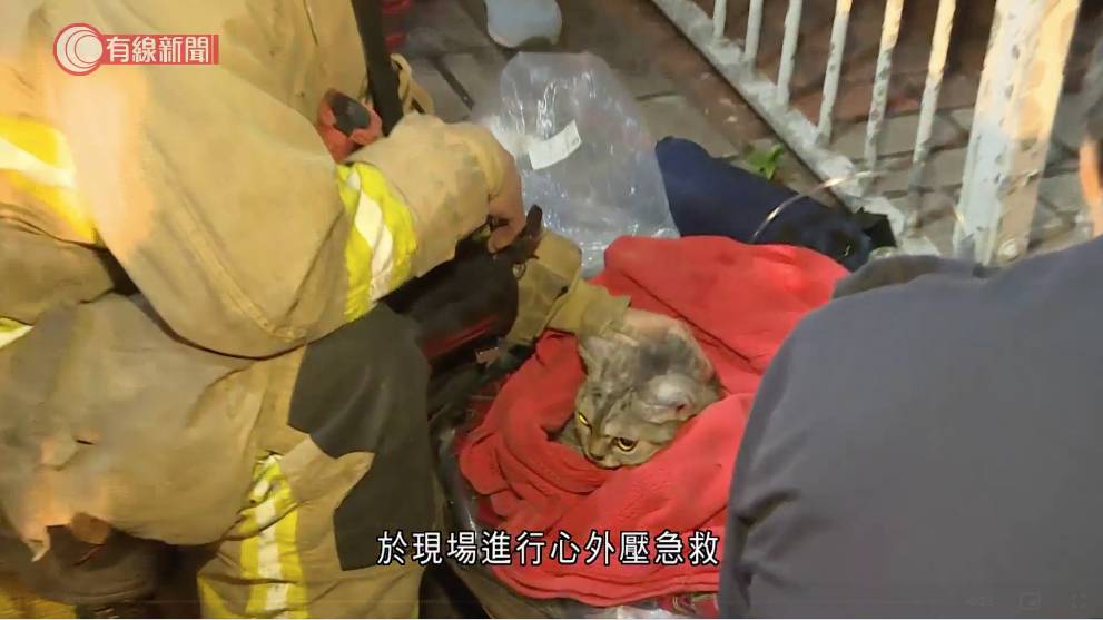 消防員救出兩隻貓 救護員為昏迷貓貓進行心外壓