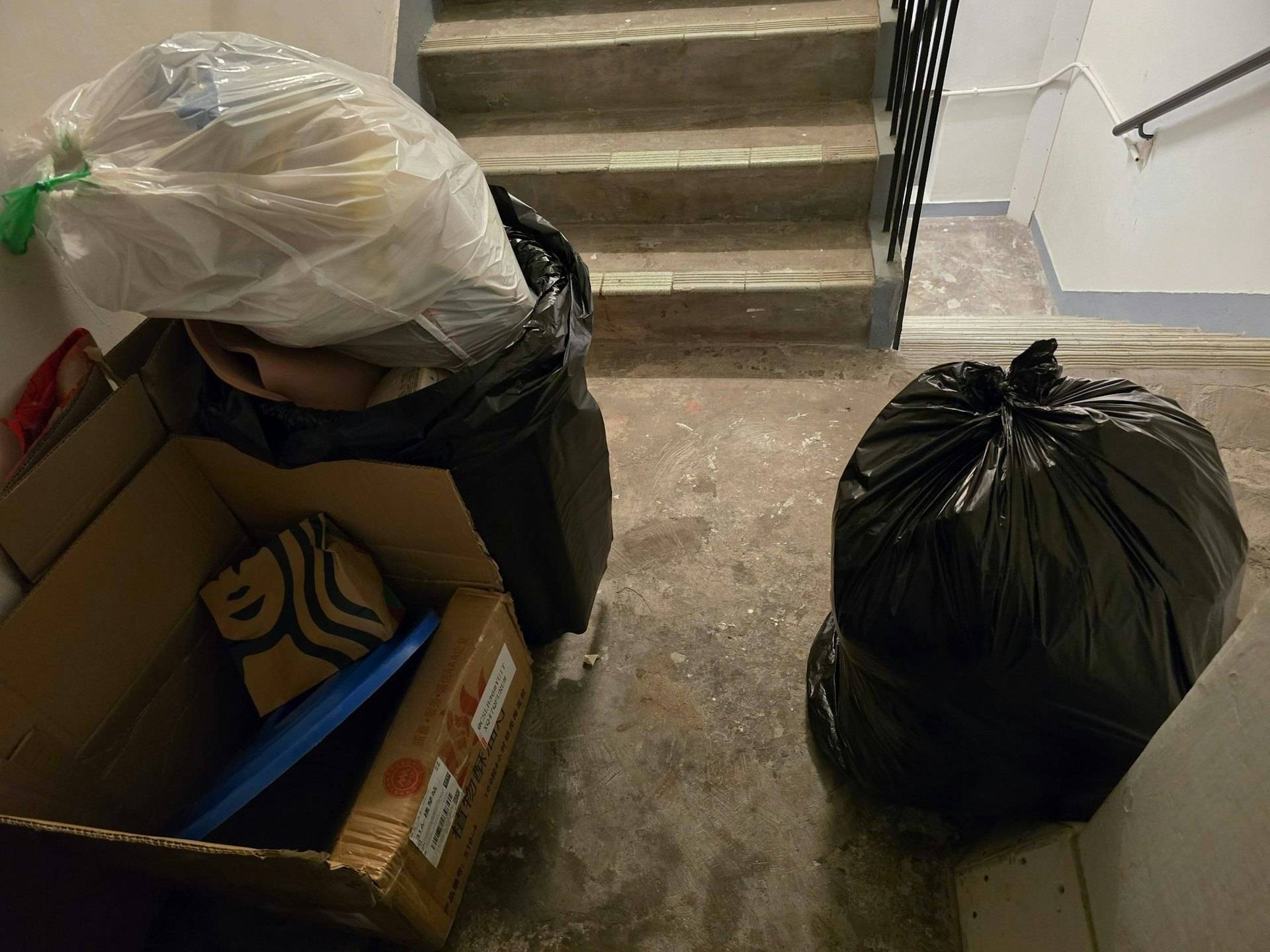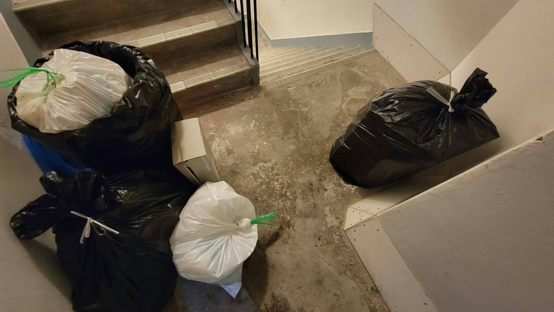 除了噪音問題外,王利民還投訴這位男戶主一家的衛生習慣。他指出後梯大垃圾桶原本由三戶共用,其中一戶為空置單位,但自對方一家搬入後,每晚後梯垃圾都「堆積如山」。王利民更出示存檔照片作為證據,形容情況嚴重到他倒垃圾時都要移步往另一邊後梯,即使向保安反映也未有改善。他慨嘆直到得知對方是「名人」背景後,才明白為何李泳漢「不屑與凡夫街坊打招呼」。
