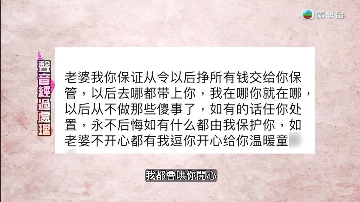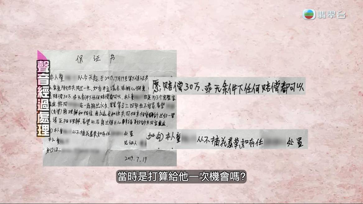 她意外發現內地丈夫手機中,他與陌生女子多張赤裸親密照片,攤牌後他竟拿了一把有齒的刀誓神劈願並寫保證書承諾下不為例,令心軟的李女士選擇原諒,更陪同丈夫到湖南辦理單程證手續。