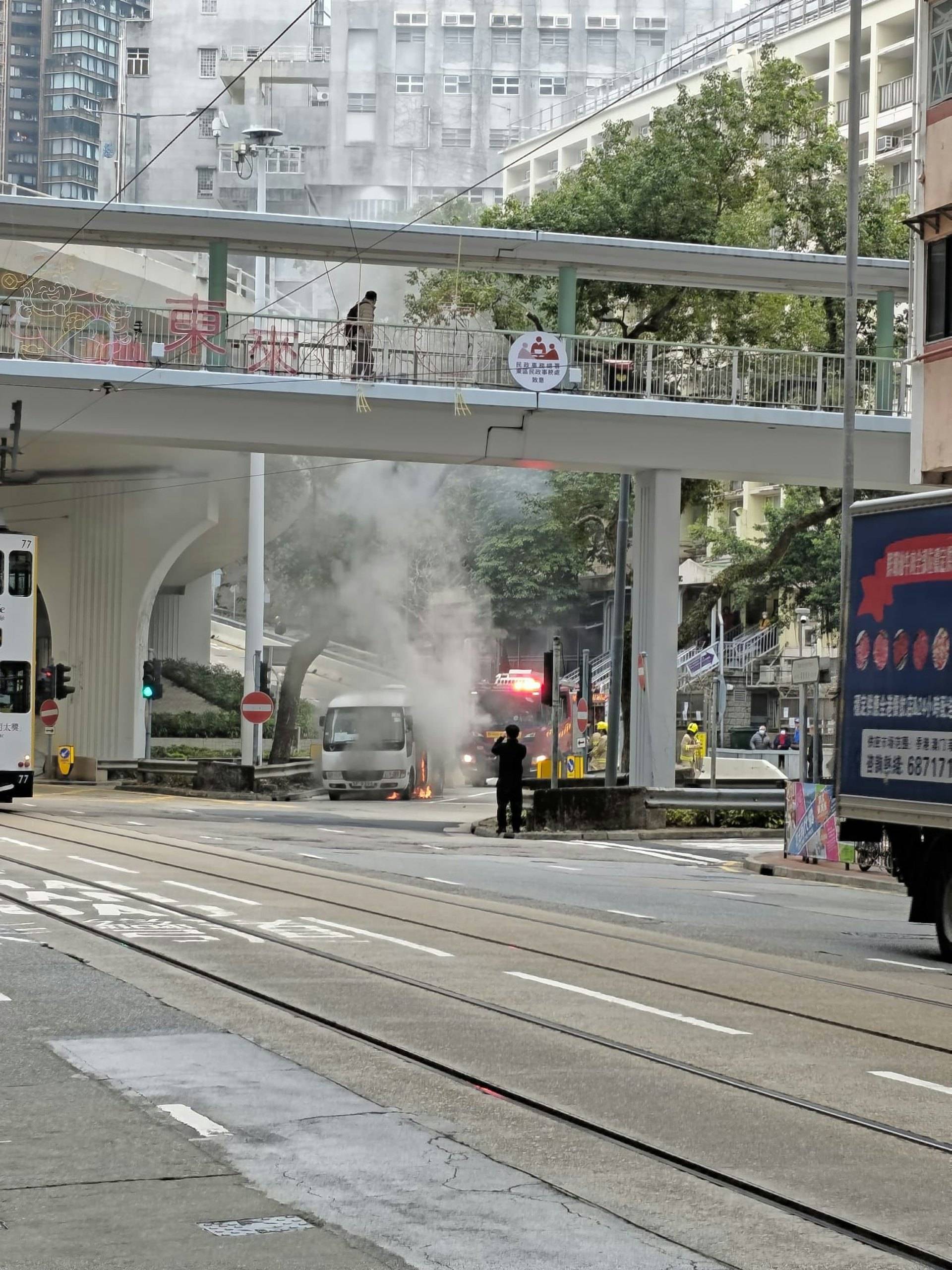 校巴停泊期間突然起火 途人驚見濃煙報案