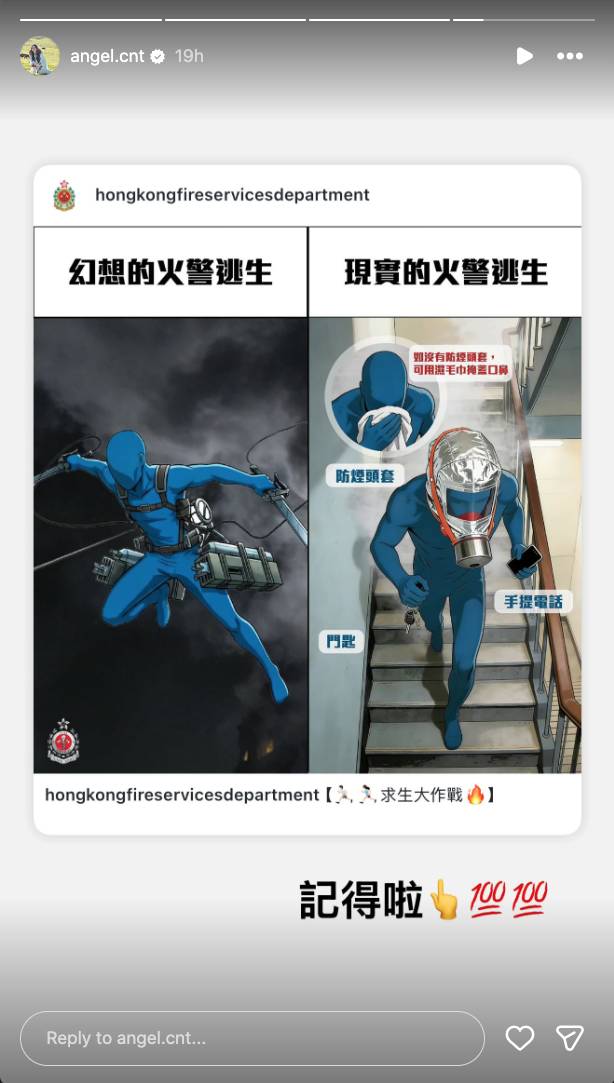 最令人意外的是,鍾培生本人竟然親自在帖文下留言回應「多謝消防處教我逃生嘅策略」,展現出幽默感和親民態度,令網民大讚他的反應機智,大方得體!這個互動瞬間成為網民熱話,不少人表示欣賞鍾培生能夠以輕鬆態度回應官方的「抽水」行為。至於準鍾太莊雅婷也轉發了消防處的抽水帖文,提醒大家要記得逃生正確方法,也打上兩個100分,即給了200分,超越滿分。