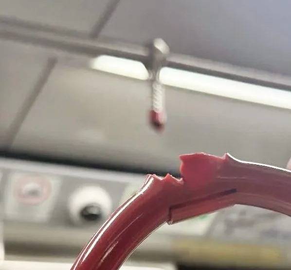 該名男士在社交平台發文,指自己乘搭港鐵港島綫時,如常緊握著吊環扶手,豈料扶手突然應聲斷裂。從他上載的相片可見,整個膠製的吊環連同帶子被扯脫下來,而車廂天花的懸掛處則空空如也。事主直言當下感到非常尷尬,不但弄得自己滿手都是灰塵,更成為全車廂乘客的焦點,場面一度十分尷尬,有乘客更「嘩」一聲。