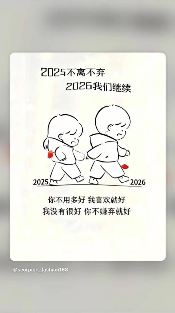 「你不用多好 我喜歡就好 我沒有很好 你不嫌棄就好」,還寫著「2025不離不棄 2026我們繼續」