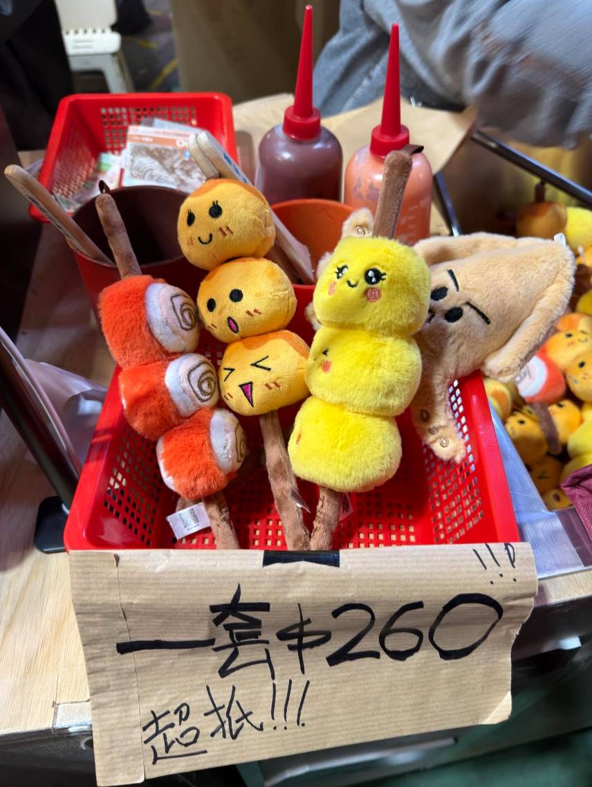 位於維多利亞公園年宵市場的「爐氣」攤檔,主打各種港式小食主題公仔,包括燒賣、魚蛋、煎釀三寶、燒魷魚等,檔口設計相當用心,模擬真實小食檔環境,一串串燒賣放在「蒸籠」內,串燒放在「燒烤爐」上待售,公仔造型十分可愛,成功吸引了很多有小朋友的家庭駐足觀看。此外,其買賣模式也很有趣,顧客落單後,店員會用食物夾夾起公仔,再放入紙袋交給客人,整個購買過程充滿趣味性,本來應該是相當受歡迎的創意攤檔。