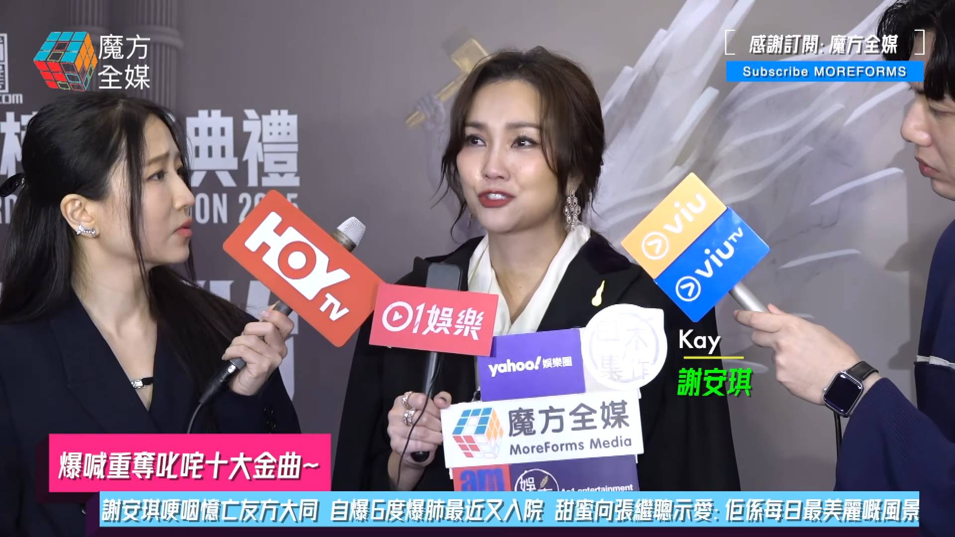 更令人震驚的是,謝安琪透露自己的左肺曾爆過四次,她受訪透露近兩、三年連右肺也爆過兩次,共6度爆肺,情況令人擔心。她坦言多次爆肺令她唱歌、呼吸、跑步做運動都有問題。早前更因病入院留醫,直至一個多星期前才出院,當她提到自己的情況時,更哭到一度要暫停訪問。她說「我企喺台上心情好複雜,我最近真係病咗入醫院,失聲,自己把聲好難聽。出院咗一個星期,不停針灸去開聲。因為我公司就只係出咗一首歌,如果得獎我唔能夠唱就好對唔住同事……」,她坦言目前的身體狀況,都似乎「叫我唔好做咁多嘢咁」。