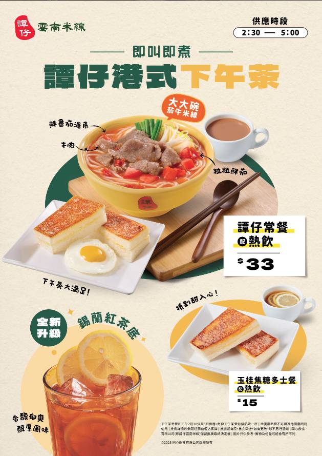 - 適用分店:全線譚仔雲南米線(部分指定分店除外,建議入座前先向店員查詢)。