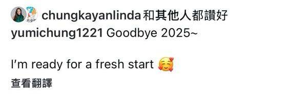 昨日除夕,19歲鍾柔美在社交平台發佈2025年回顧相片,當中包含自拍照、抱寵物照、泳照、台上演出照片,記錄她去年的生活及工作片段。不過在這些精選相片中,自然不見她與多位好友玩「truth or dare」時的錫面相,顯然經過精心篩選。她為過去一年作個總結,同時迎接新一年的到來,她發文:「Goodbye 2025 I ‘m ready for a new start. 」,並在句末加了一個笑Emoji,看來心情不錯,未有受言論影響,疑在回應近日負評。