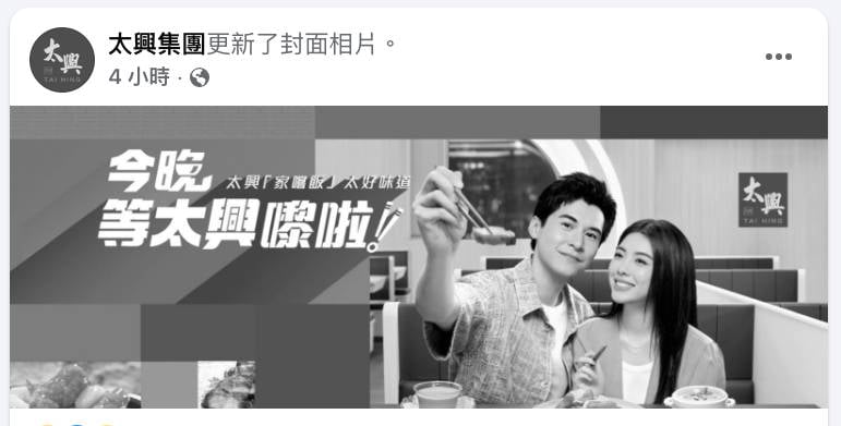 太興集團官方網站、所有社交平台均轉黑白,表達哀悼之情,很多網民都留言致哀。(圖片來源:Facebook@太興集團)