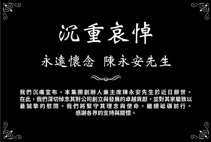 陳永安 太興 太興發悼文致哀。(圖片來源:太興集團官方網站)
