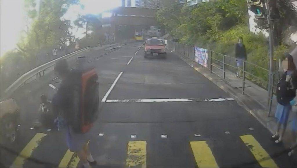 片段中可見女學生被的士撞飛後一度跌在地上,其後忍痛爬起,後方其他學生見狀被嚇得目瞪口呆。有途經司機見狀立即下車查看女童狀況。