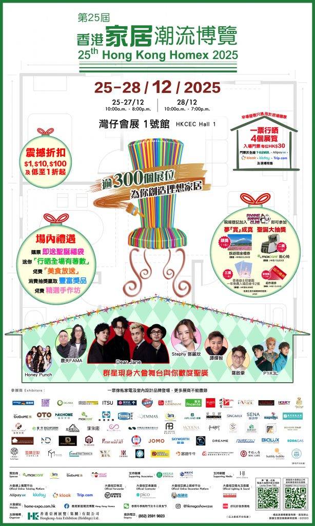 第25屆香港家居潮流博覽2025為全港最大型家居展覽之一,匯聚傢俱、寢室用品、智能家居、廚浴設備及裝修建材等豐富展品,助你打造理想舒適家居。現場覆蓋多個著名品牌,從設計、家電到生活服務一站式滿足新居入伙及家居翻新需求。