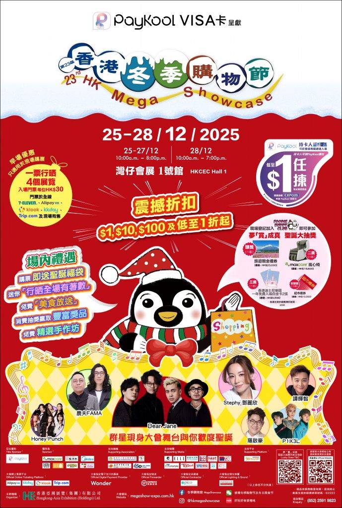 12月29日 上午10時 – 晚上7時(只有香港冬日美食節;第23屆香港冬季購物節、第25屆香港家居潮流博覽2025、數碼生活及車品博覽2025已完結) - 地點:香港會議展覽中心1號館及3號館
