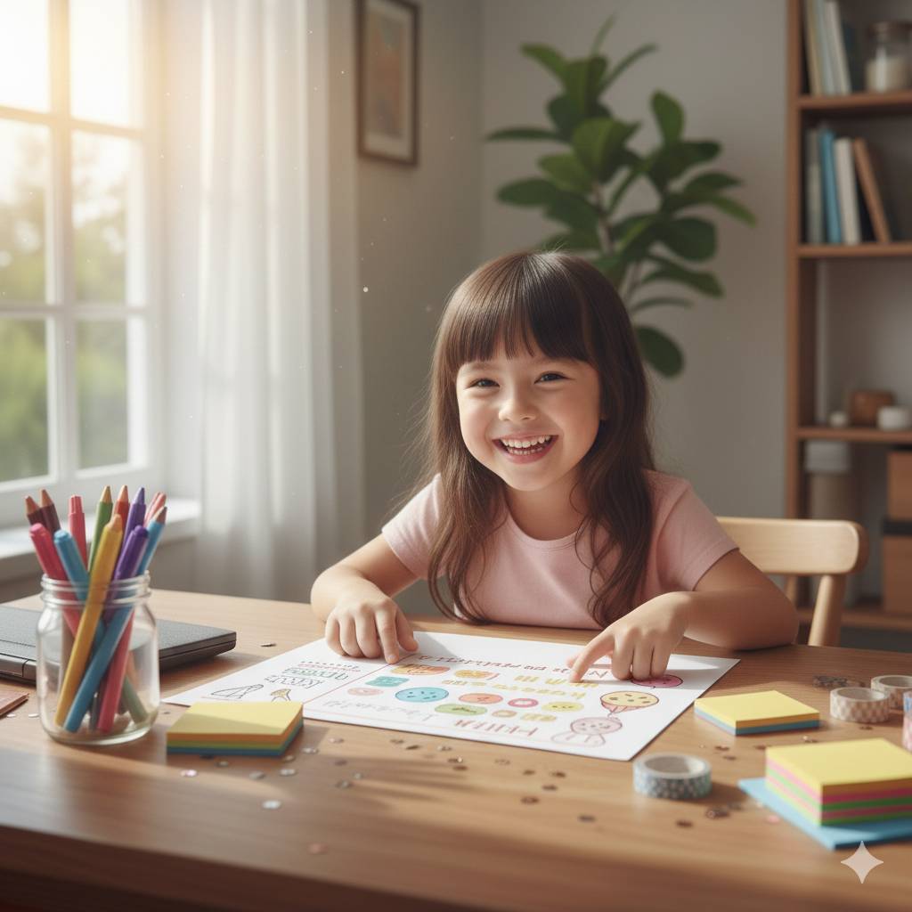 可以使用 貼紙獎勵表、成就日記、願望板 等方式,幫助孩子記錄進度,例如: