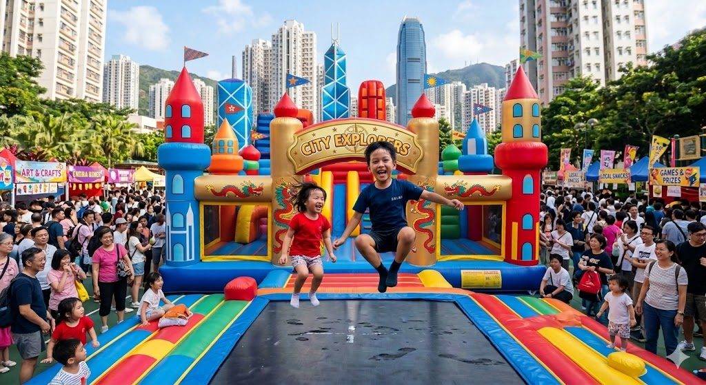 小朋友最愛的充氣彈床將強勢登陸現場!讓孩子盡情跳躍放電,消耗體力之餘,亦可訓練平衡感與大肌肉發展。各位爸媽記得幫小朋友準備水和小毛巾備用!